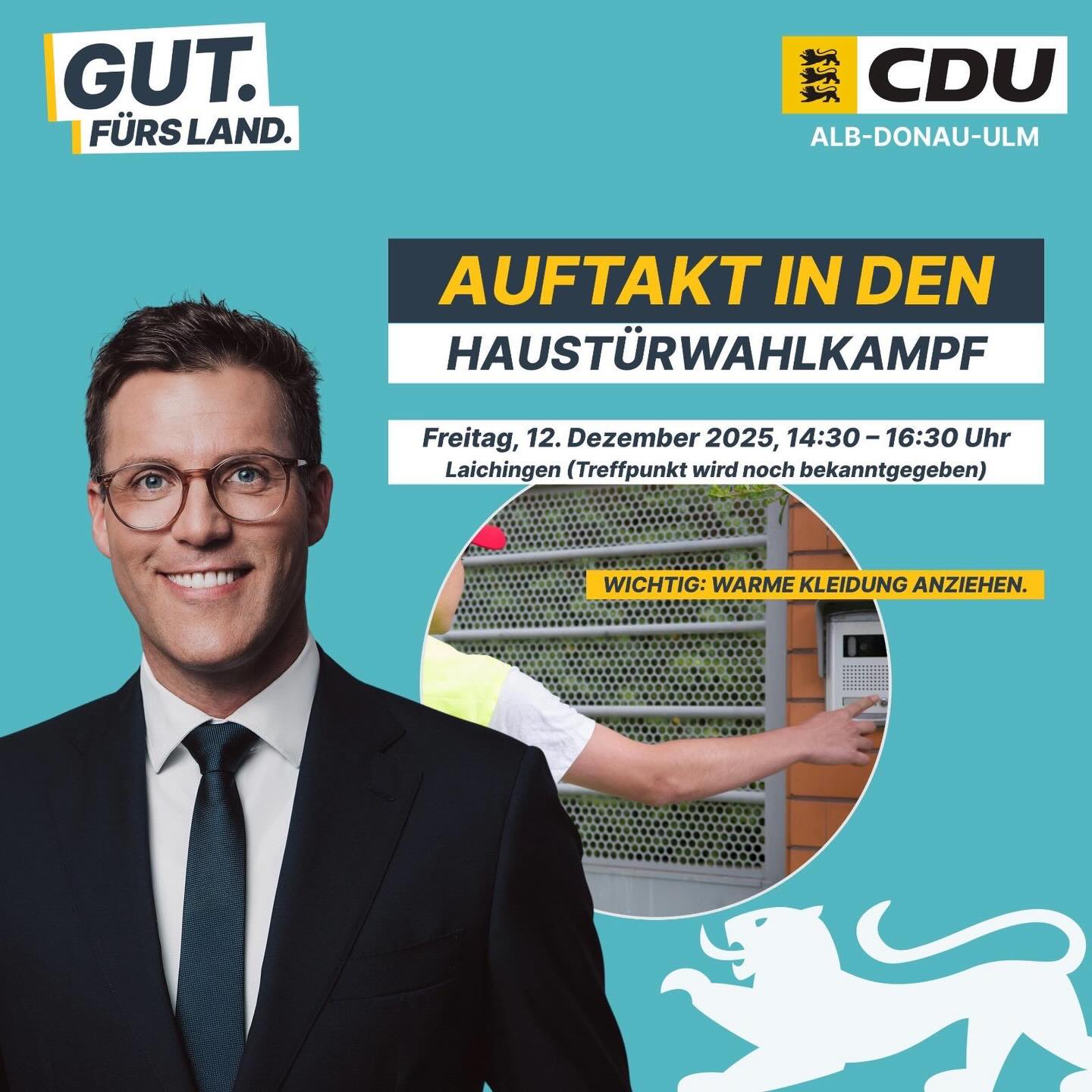 mehrJetzt geht es los mit dem Wahlkampf 💪🏻 Wer hat Lust und Zeit uns zu unterstützen? Wir treffen uns um 14:30 Uhr an der Weite Str. 123, 89150 Laichingen. Gegen 16:30 Uhr findet dann ein Ausklang mit Glühwein und Punsch in der Schillerstr. 29, 89150 Laichingen statt. @hagel.manuel wird auch vor Ort sein. Meldet euch gerne bei @cdu.alb.donau.ulm an.